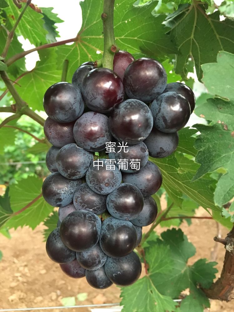 蜜光:河北省昌黎果樹研究所2013年育成的葡萄新品種;利用巨峰品種作母本,早黑寶品種作父本;成熟早,香味濃,糖度高,果粒大,結果早,豐產能力強。