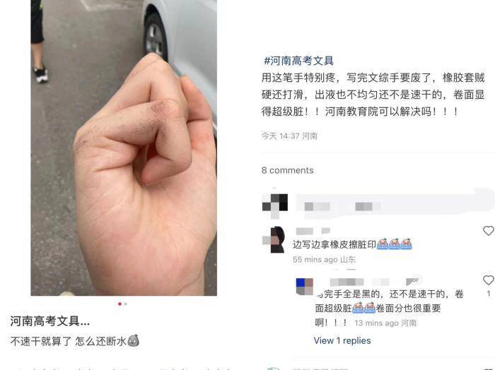 另有一位河南其他地方的考生在社交媒體上表示,其所在的考場使用的“晨光”牌的筆同樣存在問題。在發(fā)現(xiàn)筆有問題后問監(jiān)考老師又要了4支筆,其中兩根筆斷墨,兩根不出墨。