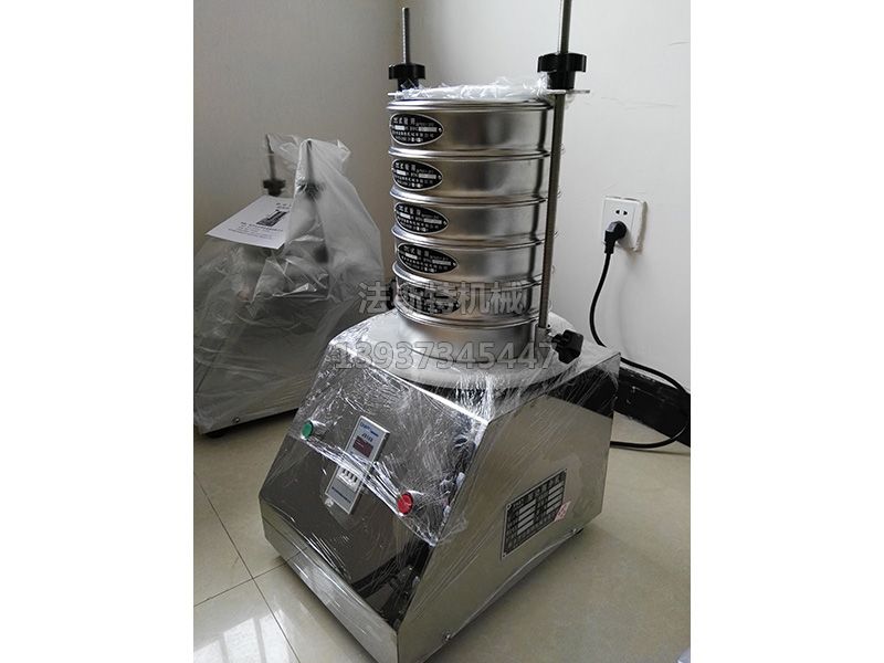 試驗(yàn)振動(dòng)篩通過(guò)振動(dòng)電機(jī)帶動(dòng)上部振動(dòng)盤(pán)振動(dòng),再通過(guò)振動(dòng)盤(pán)傳導(dǎo)至按放在振動(dòng)盤(pán)上部的國(guó)標(biāo)試驗(yàn)篩框,然后,把小于篩框孔徑的物料篩分至下層篩框,如此層層篩選,使每層試驗(yàn)篩內(nèi)留下相同粒度的物料,達(dá)到不同粒度的分離分選,并確定此物料的粒度組成。