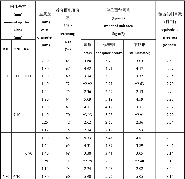 網(wǎng)孔大小的表示方法有兩種:一,直接表示網(wǎng)孔大小數(shù)據(jù);二,目數(shù):目數(shù)指1英寸25.4毫米長(zhǎng)度上孔和絲的數(shù)量,因此目數(shù)是相對(duì)單位,相對(duì)于直接表示網(wǎng)孔大小有一定的誤差,所以如果您對(duì)網(wǎng)孔要求比較嚴(yán)格,一定要求網(wǎng)孔大小,而不是目數(shù)。下面是網(wǎng)孔、絲徑、網(wǎng)目對(duì)照表